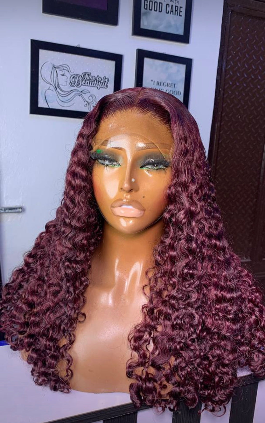 It’s a Factory wigged hair in 22”, curly unit that can be maintained with water...