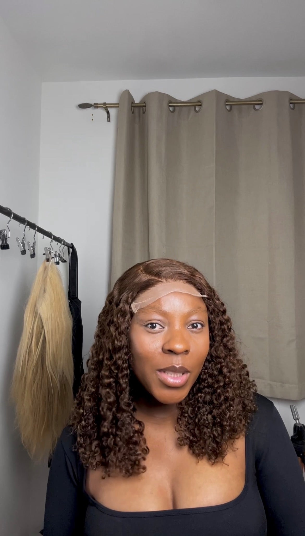This is wig CURLA in a Brown Shade, 16” 200gm with a 5x5 closure ,made in a medium cap size. 100% human hair.